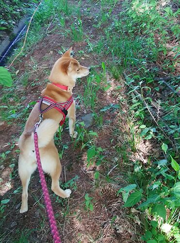 こんばんは!ご来訪をどうもありがとうございます! 今日は小羽にずいぶんと待ってもらう1日になってしまいました。 あさイチで、少しだけ散歩。 午前中は、草払い機でずっと草刈りしたため小羽は室内待機。 「草いっぱいでいいんだよ小羽は。あ!カエルの…